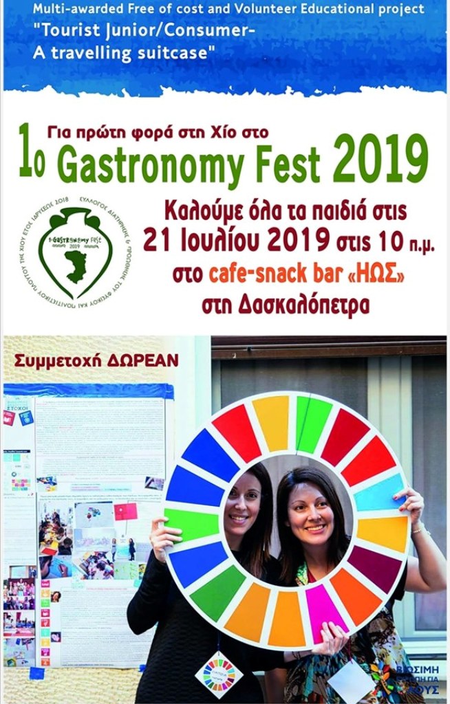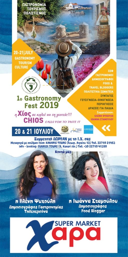 Αν όλα όσα διαβάσατε έχουν εξάψει τη φαντασία σας, αν η όρεξή σας έχει ανοίξει για γευστικές δοκιμές κι αν πάλι έχετε πολλές άγνωστες λέξεις που θα θέλατε να τις «αποκρυπτογραφήσετε, η Χίος σας περιμένει το επόμενο Σαββατοκύριακο, 20 – 21 Ιουλίου, για να σας σεργιανίσει στα μονοπάτια του 1ου Φεστιβάλ Γαστρονομίας, Πολιτισμού και Τουρισμού 2019 του νησιού, με τίτλο «Η Χίος σε καλεί να την γευθείς». Μια ματιά στο πρόγραμμα θα σας πείσει για την σπουδαιότητα του εγχειρήματος, που αποτελεί πρωτοβουλία και διοργάνωση του νεοσύστατου και εξαιρετικά δραστήριου Συλλόγου Διατήρησης και Προώθησης του Φυσικού και Πολιτιστικού Πλούτου της Χίου.