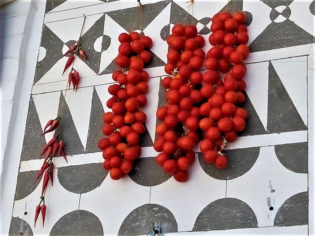 Οι Χιώτισσες κυράδες, λοιπόν, στυλοβάτες πάντοτε των οικογενειών τους και στηρίγματα των συζύγων τους, «πλάθουν» με τα ίδια τους τα χέρια τη γεύση της καθημερινής ζωής των σπιτικών τους, μιας ζωής που έχει τη γεύση του ελαιόλαδου ή του τσικουδόλαδου του νησιού, την γεύση των ξερών σύκων, της παστελαριάς και της άνυδρης ντομάτας, στεγνωμένων από τα χάδια του χιώτικου ήλιου και την δροσερή ανάσα του μελτεμιού! Ποιος είναι εκείνος που δεν έχει δει έστω και μία φωτογραφία, με τις αρμαθιές από κατακόκκινες ντοματούλες να λιάζονται κρεμασμένες από μπαλκόνια και σκεπές και να συναγωνίζονται σε ομορφιά τις επίσης κατακόκκινες λαλάδες, τις περίφημες τουλίπες της Χίου!