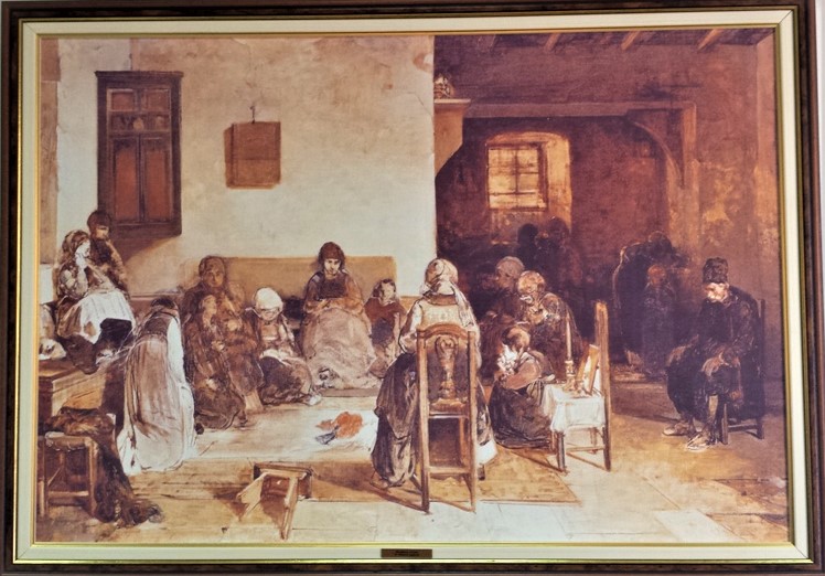 …αποτελεί, εκτός όλων των άλλων, έναν χώρο όπου εκτίθεται οτιδήποτε έχει να κάνει με την ιστορία και τον πολιτισμό του νησιού. Εδώ, ο πίνακας του Νικηφόρου Λύτρα «Ψαριανό μοιρολόι» (1888), όπου οι συγγενείς θρηνούν για τον χαμένο ναυτικό, καθισμένοι αυστηροί και σιωπηλοί γύρω από το φέσι του. Ο πρωτότυπος πίνακας έχει διαστάσεις 97×140 εκατοστά και εκτίθεται στη συλλογή της Εθνικής Πινακοθήκης. Αξίζει να σημειώσουμε εδώ ότι εκ πατρός καταγωγή από τα Ψαρά είχε και ο μεγάλος ζωγράφος -και όχι μόνο- Νίκος Χατζηκυριάκος Γκίκας (1906 – 1994).
