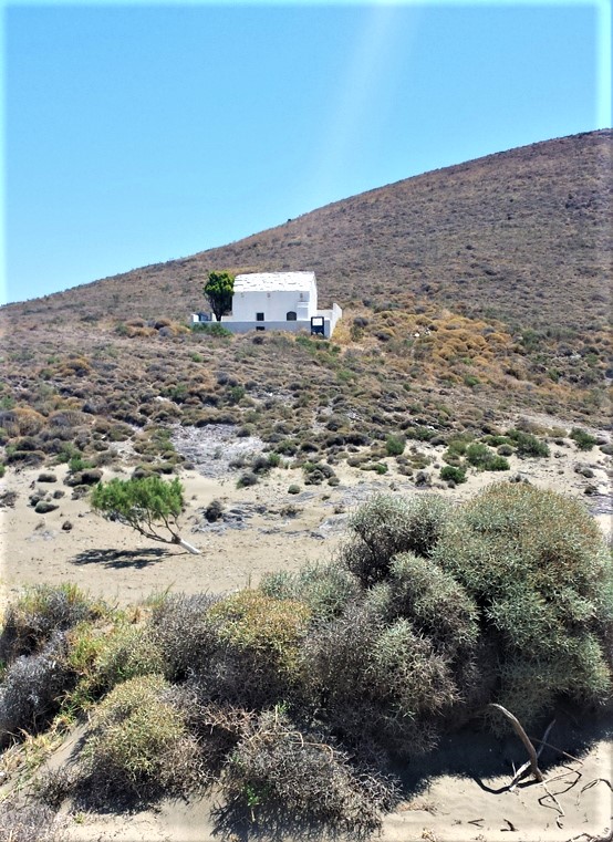 …η οποία ατενίζει αγέρωχα προς την ανατολή, αλλά και προς το γειτονικό λοιμοκαθαρτήριο Σπιτάλια, στο ανατολικό άκρο της ρηχής και αμμώδους παραλίας Κατσούνι…