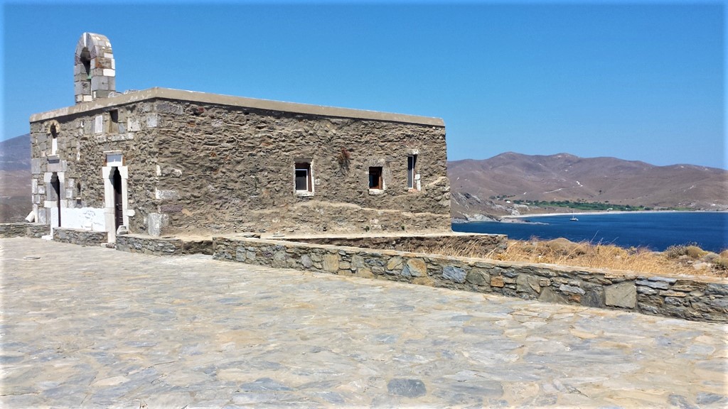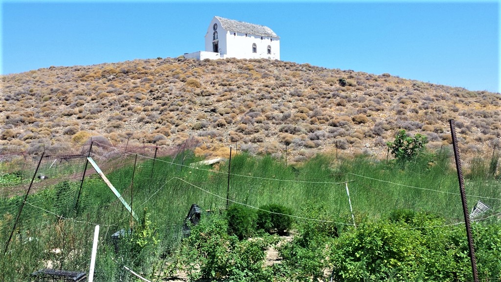 Το εκκλησάκι του Αγίου Ονουφρίου, με την υπέροχη θέα προς την παραλία Λαζαρέτα.