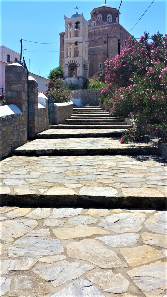Συγκίνηση και δέος αισθάνεται όποιος ανεβαίνει τα 60 φαρδιά σκαλοπάτια, προκειμένου να επισκεφθεί την εκκλησία, όπου προσκύνησε ο Κανάρης πριν ξεκινήσει για το μεγάλο κατόρθωμά του, την ανατίναξη της τουρκικής ναυαρχίδας έξω από το λιμάνι της Χίου. Την σκάλα αυτή είχαν δικαίωμα να ανέβουν μόνο τα μέλη της άρχουσας τάξης των Ψαρών, υπήρχαν δε ακόμα δύο κλίμακες για τους υπόλοιπους κατοίκους του νησιού, τις οποίες χρησιμοποιούσαν πάντα με κοινωνικά κριτήρια, τόσο απαρέγκλιτα, ώστε εξ αυτού και μόνο του γεγονότος μπορούσε να γίνει αντιληπτή η κοινωνική θέση του ανερχόμενου προς τον ναό.