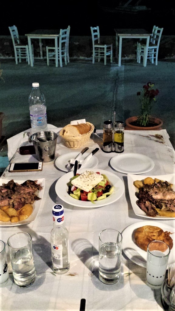 Αποκορύφωμα της ψαριανής κουζίνας το ντόπιο κατσικάκι στο φούρνο! Κρέας ολοτρύφερο, χωρίς την παραμικρή ενοχλητική μυρωδιά, από ένα ζώο που ως και την προηγούμενη μέρα έβοσκε αμέριμνο στην ψαριανή γη! Kαι μια παρατήρηση: πρώτη φορά η πραγματικά τεράστια μερίδα μου περιελάμβανε περισσότερο κρέας απ’ ότι πατάτες! Οι Ψαριανοί ξέρουν πραγματικά να είναι φιλόξενοι και σωστοί επαγγελματίες, αντιμετωπίζοντας τους επισκέπτες τους ως φίλους του νησιού και όχι ως «πορτοφόλια»!