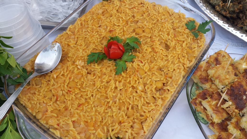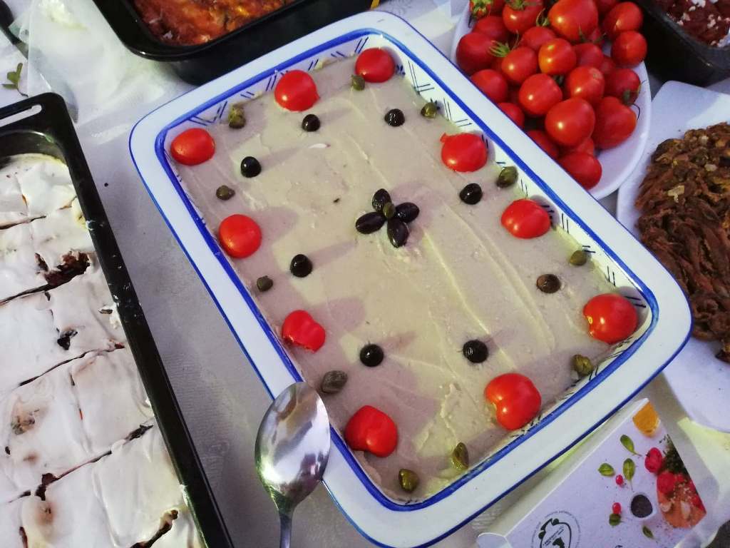 …που διακρίνεται εδώ σε πρώτο πλάνο, σε ξεχωριστά σκεύη, ενώ δοκιμάσαμε επίσης ρεβυθοπίλαφο, μαλαθροπιτάκια, κολοκυθόπιτα, καναπεδάκια με ντόπιο τυρί και ντοματάκια…