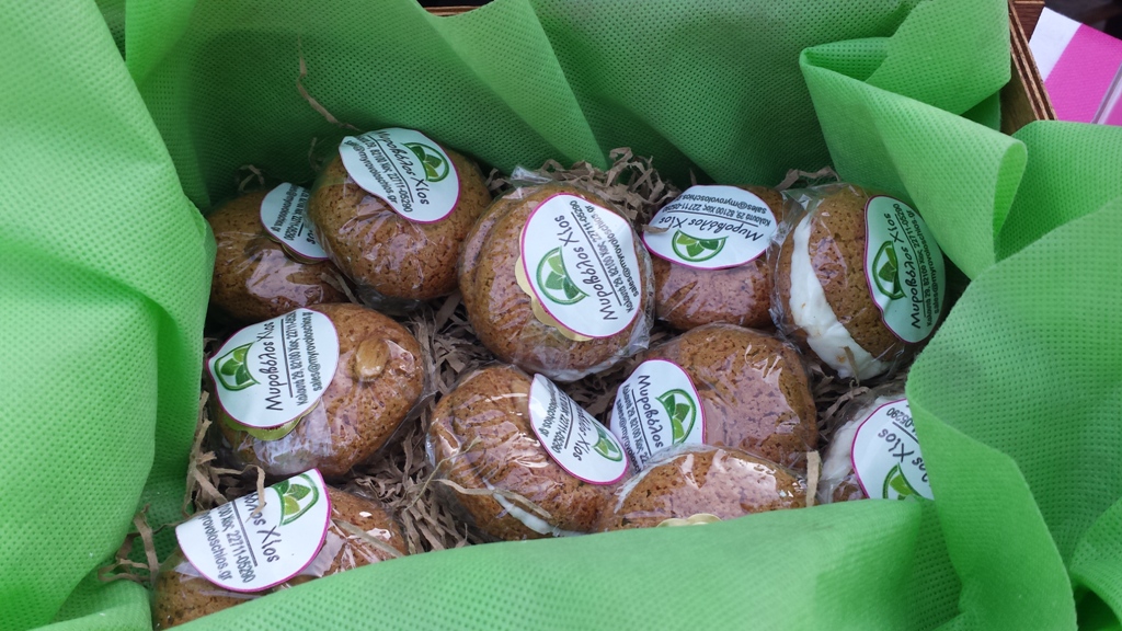 Στο stand της εταιρείας τοπικών και παραδοσιακών προϊόντων Χίου «Μυροβόλος Χίος», δοκιμάσαμε υπέροχους χιώτικους κουραμπιέδες…