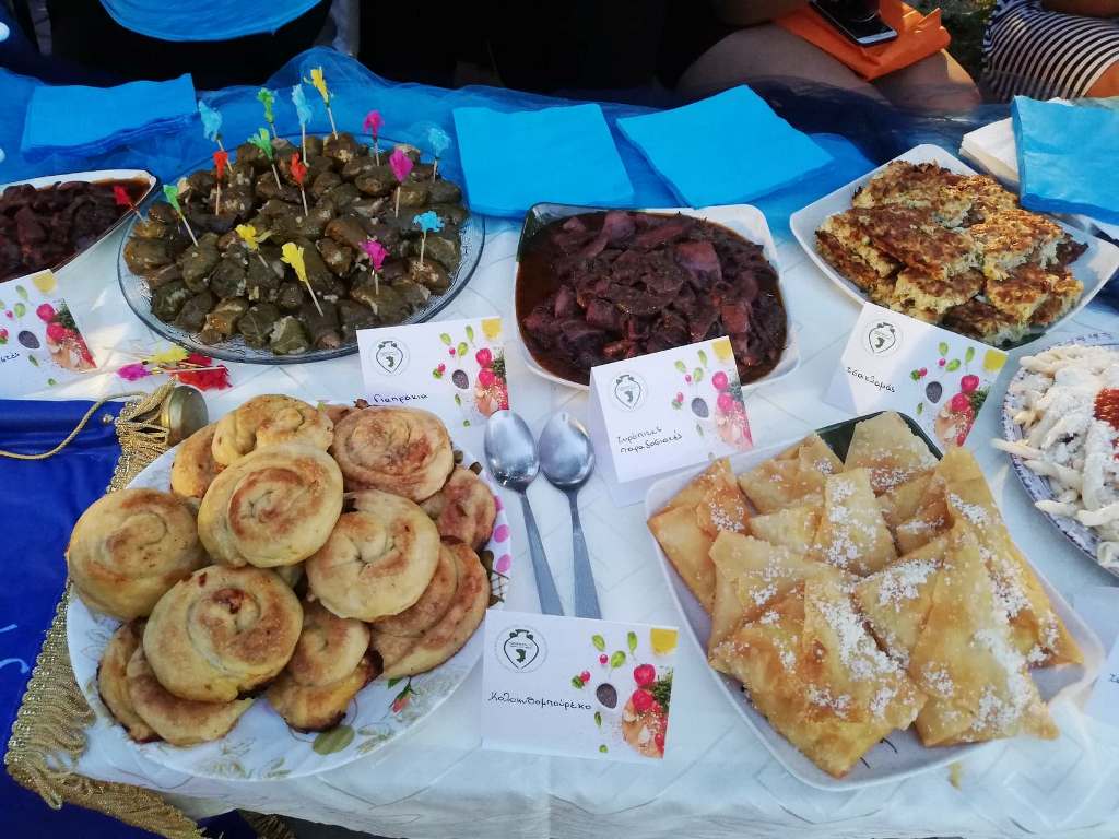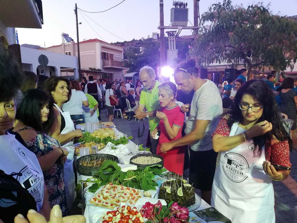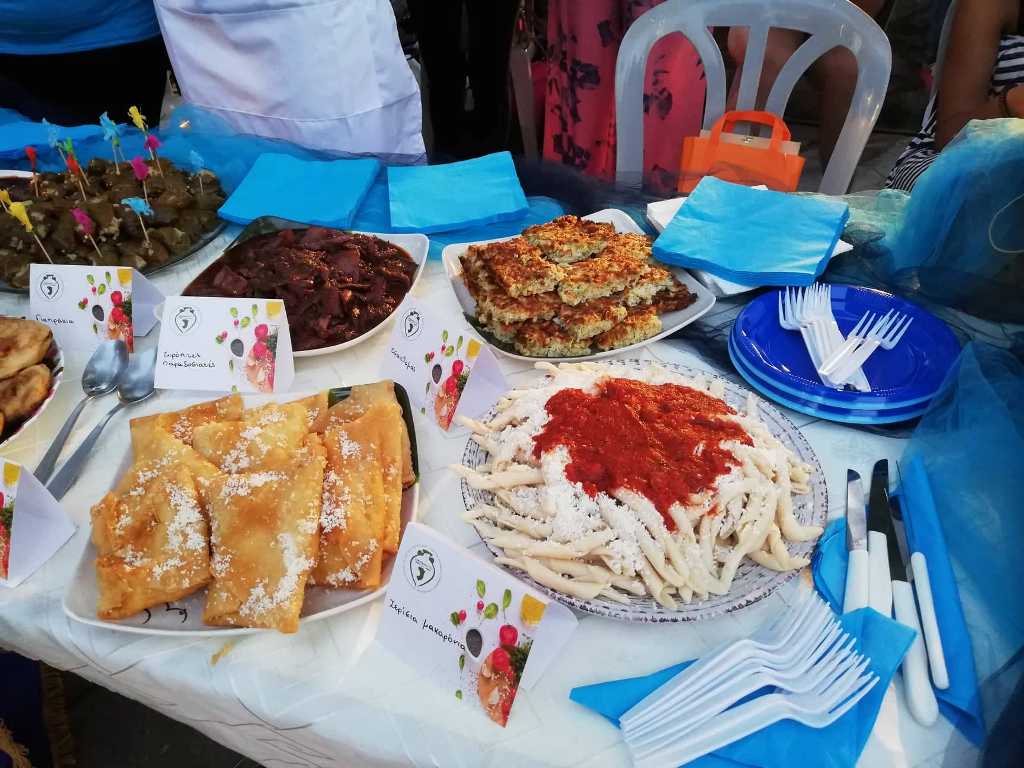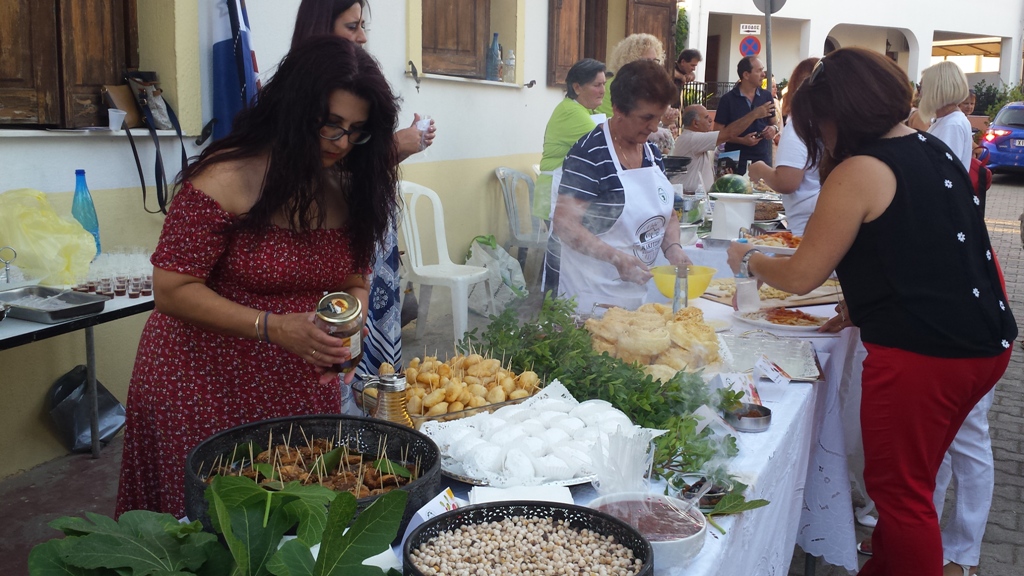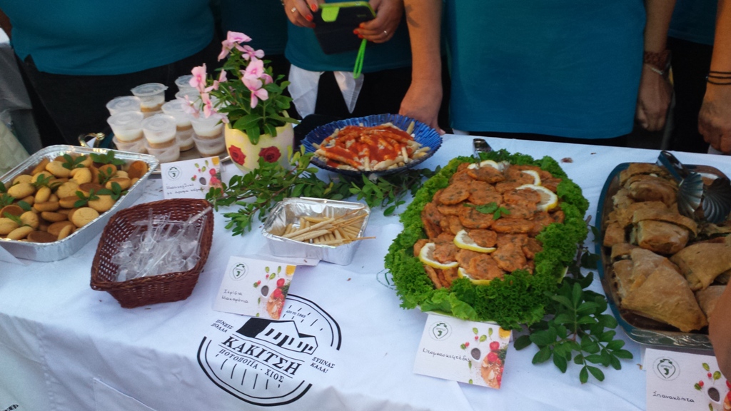 Αμέσως μετά την μαγειρική από τις διάσημες καλεσμένες του Φεστιβάλ, ξεκινά το πιο ενδιαφέρον κομμάτι, αυτό της γευσιγνωσίας των τοπικών εδεσμάτων που ετοίμασαν οι χρυσοχέρες νοικοκυρές – μέλη των συμμετεχόντων Συλλόγων. Δεν θα μπορούσαμε παρά να ξεκινήσουμε την περιήγησή μας από το πλούσιο τραπέζι του διοργανωτή Συλλόγου «Μυρωδάτη Χίος«.