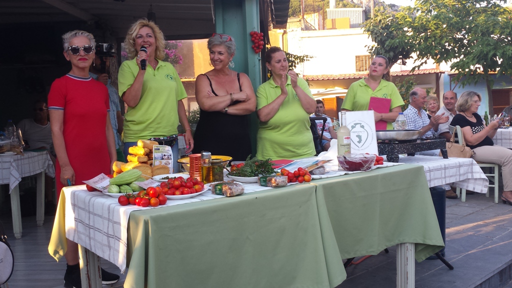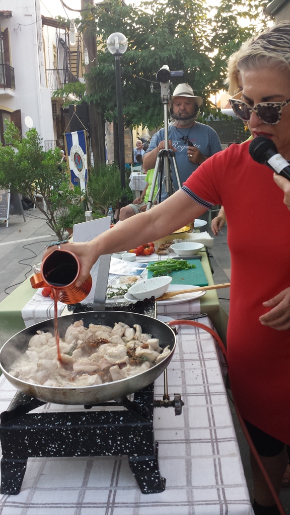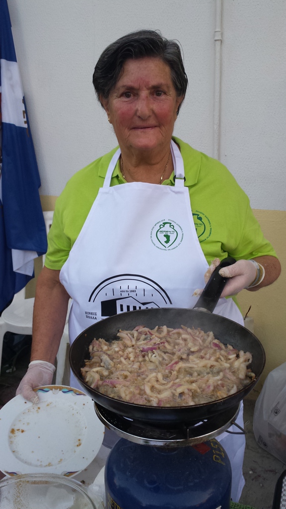Η πανταχού παρούσα και βοηθούσα κυρία Κατερίνα Καρυστιανού, μητέρα της Άννας και της Ειρήνης, ανέλαβε το show cooking, ετοιμάζοντας με επιδεξιότητα χιώτικο μπεγότο, δηλαδή γόνο με κρεμμύδια στο τηγάνι. Απίστευτη νοστιμιά!