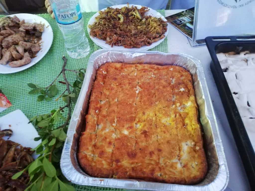 Εκτός, λοιπόν, από τα χερίσια μακαρόνια εδώ γευθήκαμε επίσης παραδοσιακές τυρόπιτες, τσαχλαμά (είδος πίτας)…