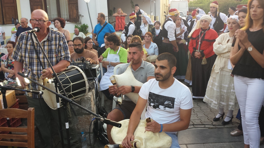 Παρουσίασαν τσαμπουνιστούς σκοπούς του χωριού τους υπό τους ήχους τσαμπούνας (από τον Παντελή Σούκα και τον Νίκο Αττούνη) και τουμπιού από τον Γιώργο Βαφέα, ο οποίος τραγούδησε επίσης. Χόρεψαν τους ακόλουθους χορούς της Νότιας Χίου: Συρτός – Κάτω χορός – Χασαποσέρβικο, Μαρού, Σιγανός – Τρεχάτος, Νοσοκόμα και Μόστρα.