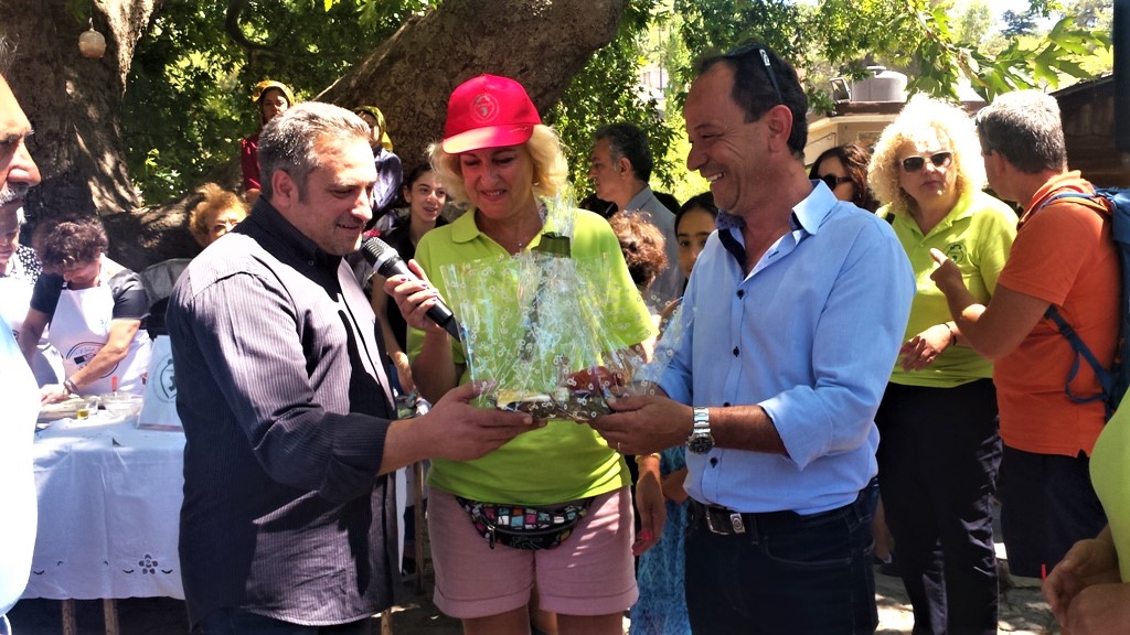 Εκατέρωθεν της Άννας Κλαδιά, Προέδρου του Συλλόγου «Μυρωδάτη Χίος«, οι πρωτεργάτες του πλούτου εικόνων και εμπειριών, που αποκομίσαμε από το Πιτυός. Αριστερά ο Νίκος Γεωργούλης, παλιός και καλός συνάδελφος, από την εφημερίδα «Πολίτης» της Χίου, ο οποίος εγκαταστάθηκε πλέον μόνιμα εδώ και με βάση του την ταβέρνα «Μάκελος», αγωνίζεται να προωθήσει όλα όσα έχει στο μυαλό του για την αειφόρο ανάπτυξη του χωριού. Και είναι πολλά! Δεξιά, ο Ζαννής Κοκολιάς, ο εξίσου δραστήριος Πρόεδρος του Μορφωτικού και Εκπολιτιστικού Συλλόγου Πιτυούς «Ο Μάκελος«. Γιατί, ως γνωστόν, ποτέ ένας κούκος δεν φέρνει την άνοιξη και οι συνέργειες επιβάλλονται. Το Πιτυός, όπως και ολόκληρη η Χίος, αποκτούν σιγά-σιγά την θέση που τους αξίζει στον γαστρονομικό χάρτη της Ελλάδος.