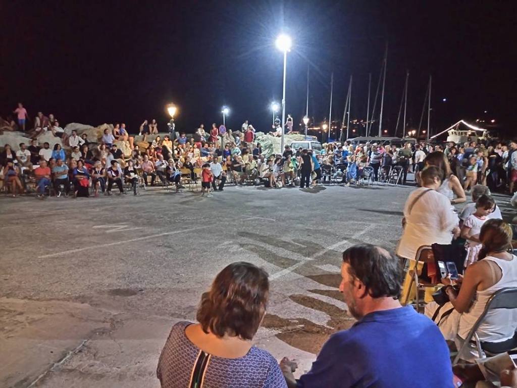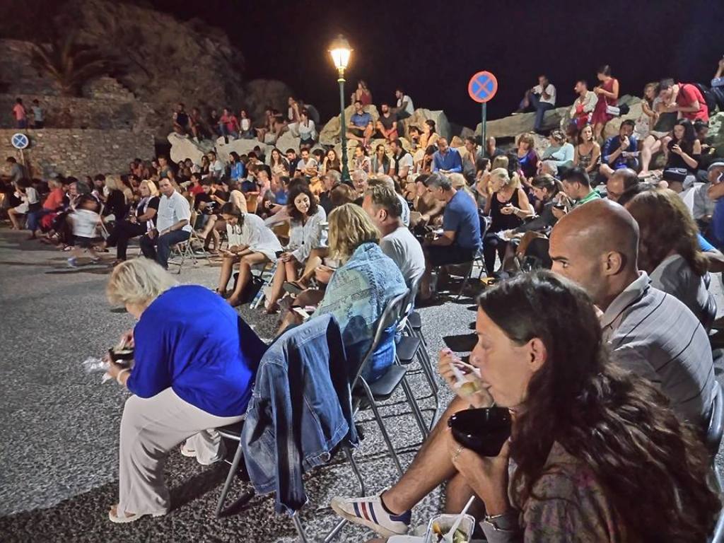 Πλήθος κόσμου απ’ όλη την Φολέγανδρο κατακλύζει κατά τη διάρκεια της συγκεκριμένης βραδιάς το λιμάνι του Καραβοστάση, στο οποίο είχαν τοποθετηθεί καρέκλες, για την καλύτερη εξυπηρέτηση των προσερχομένων στην εκδήλωση.