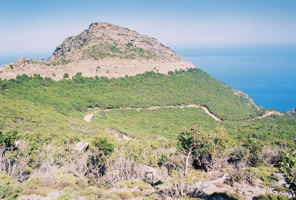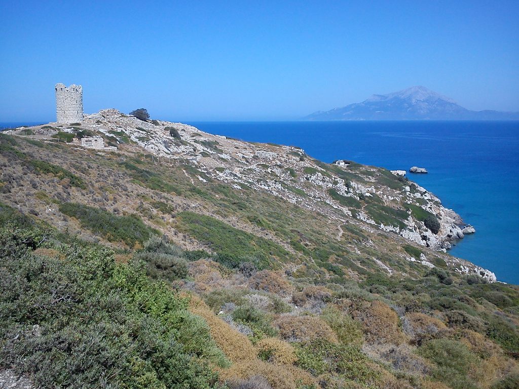 Ο Πύργος του Δράκανου και στο βάθος το όρος Κέρκης της Σάμου.