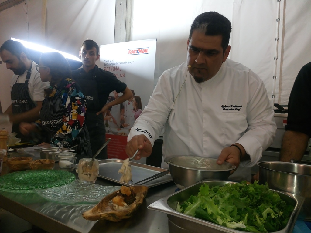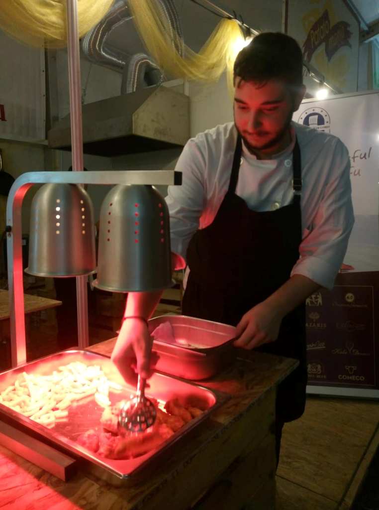 Και φυσικά δεν θα μπορούσαν από ένα τέτοιο πολυσυλλεκτικό Φεστιβάλ, να λείψουν οι ζωντανές μαγειρικές από τους πλέον ειδήμονες, τα μέλη της Λέσχης Αρχιμαγείρων Κέρκυρας, οι οποίοι εντυπωσίασαν το πολυπληθές κοινό τους με τις εξαιρετικές σε σύλληψη και γεύση δημιουργίες τους. Εδώ ο Πρόεδρός της Λέσχης Σπύρος Βουλισμάς δημιουργεί με προϊόντα του νησιού…