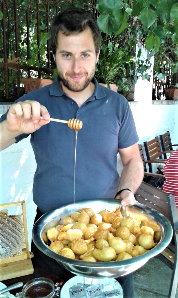 …και λουκουμάδες με πηλιορείτικο μέλι, που ρέει από τα χέρια του Μελέτη Ανδρινού.