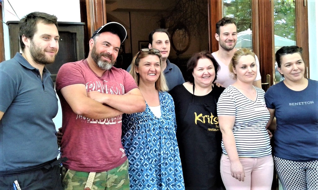 Η δυναμική ομάδα της Ελένης Καραΐσκου με τον Βασίλη Καλλίδη, στην είσοδο του εστιατορίου «Κρίτσα».