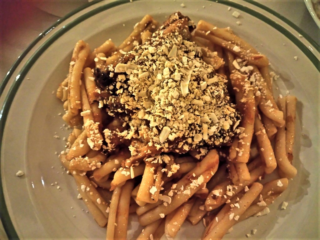Πρόβειο κρέας κοκκινιστό με χωριάτικα ζυμαρικά και τριμμένη ξυνομυζήθρα.