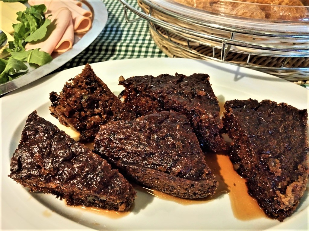 Η βεντάλια των γλυκών γεύσεων περιελάμβανε επίσης πάμπολλες επιλογές. Από αριστερά γαλατόπιτα ξεσκούφωτη με μέλι, μηλόπιτα, κέικ με πορτοκάλια και σοκολάτα και πάστα φλώρα με μαρμελάδα φράουλα (διακρίνεται στο άκρο δεξιά). Πίσω το καροτένιο κέικ (στο σκεπαστό γυάλινο σκεύος), ενώ το γλυκοπανόραμα περιελάμβανε ακόμα κορμό παντεσπάνι με μαρμελάδα και βανίλια, ρυζόγαλο με κρέμα πορτοκαλιού και χαλβά.
