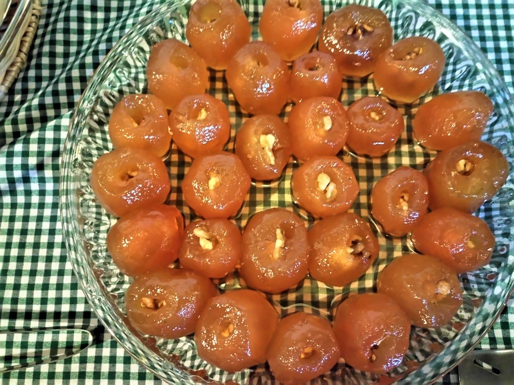 Οι μαρμελάδες και τα γλυκά του κουταλιού, όπως το λαχταριστό γλυκό φιρίκι της φωτογραφίας, παρασκευάζονται με ιδιαίτερη φροντίδα και αγάπη από φρούτα της περιοχής.