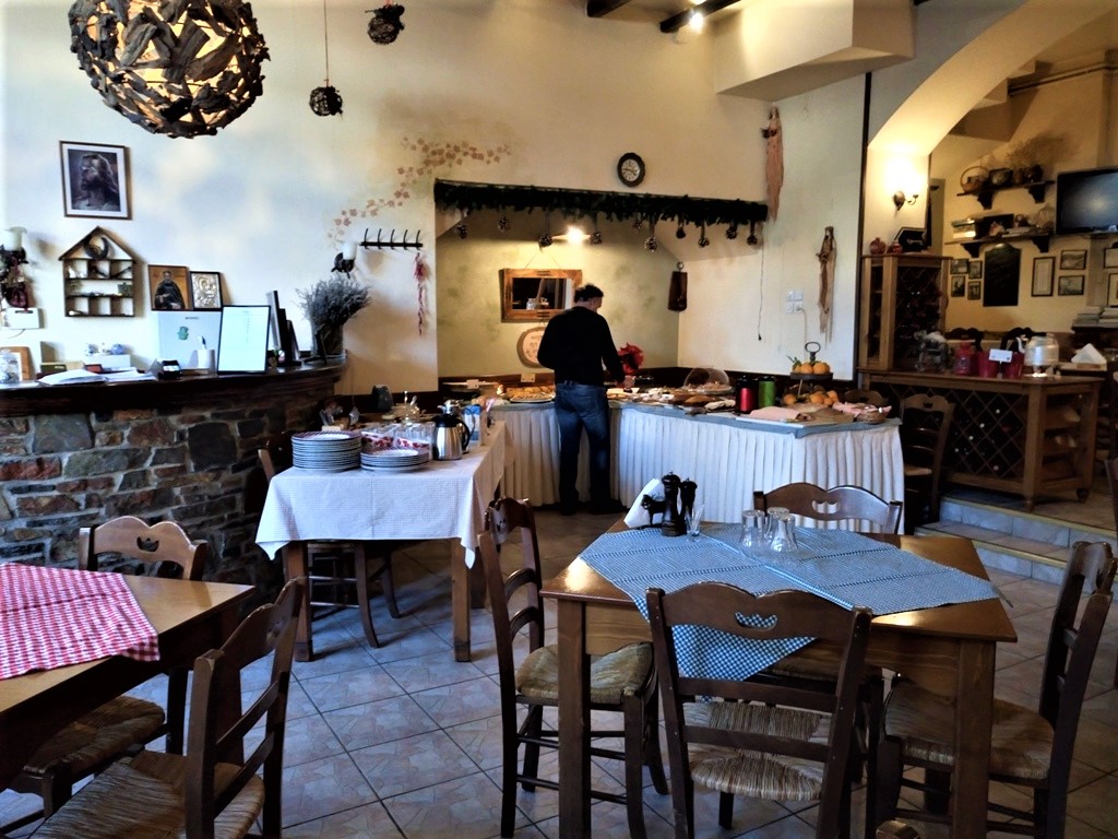 Όχι όμως μόνο το βράδυ, αλλά και κάθε πρωί μοσχοβολάει το ξενοδοχείο, καθώς ετοιμάζεται ένας πλούσιος μπουφές γεμάτος από Πηλιορείτικες γεύσεις και μυρωδιές του βουνού. Οι επισκέπτες απολαμβάνουν το πρόγευμα τους δίπλα στο τζάκι τον χειμώνα ή στη πλατεία με τα αιωνόβια πλατάνια και τα τρεχούμενα νερά της πηγής το καλοκαίρι, ξεκινώντας την μέρα τους γεμάτοι ενέργεια και καλή διάθεση.