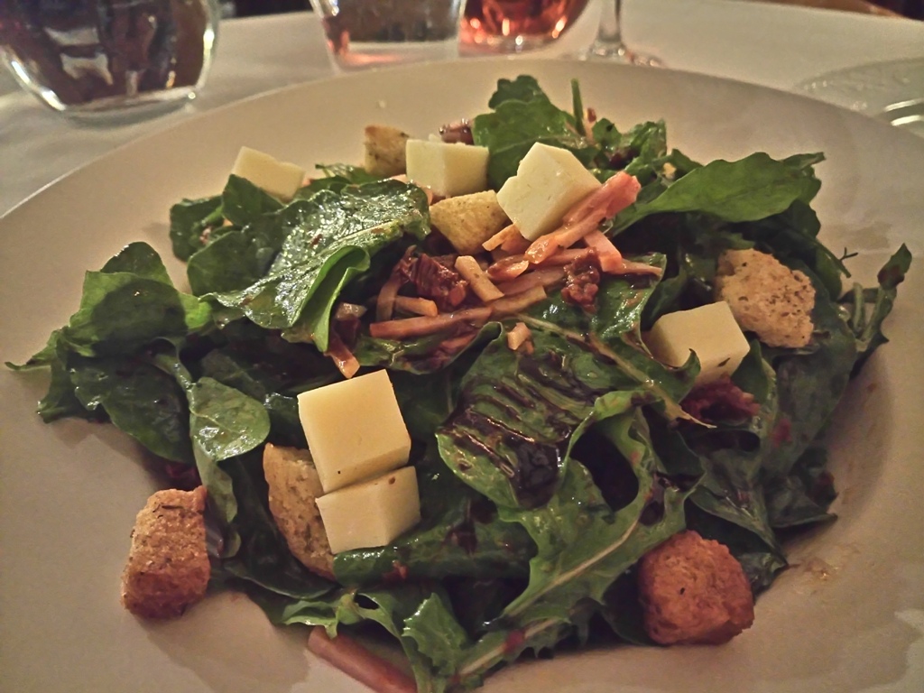 Σαλάτα Πανδαισία με ρόκα, λούντζα, γραβιέρα και σπιτικά κρουτόν.