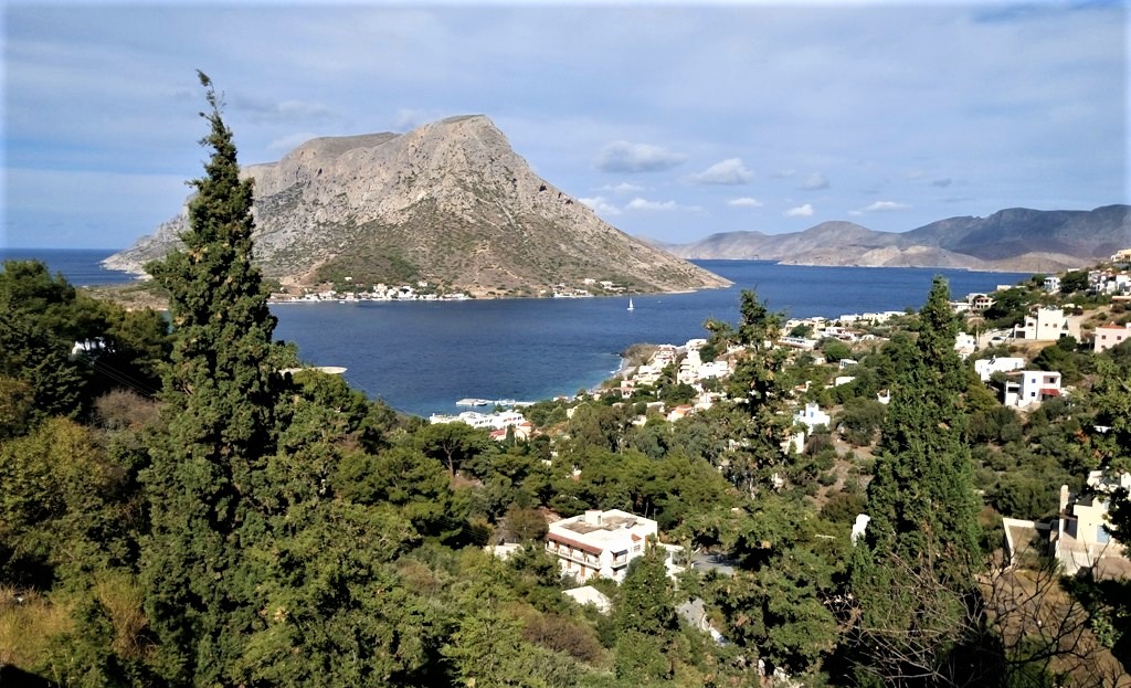 Η Τέλενδος, ένα από τα μικρότερα κατοικημένα νησάκια της Περιφέρειας Νοτίου Αιγαίου, όπως φαίνεται από την γειτονική της Κάλυμνο (Δωδεκάνησα).