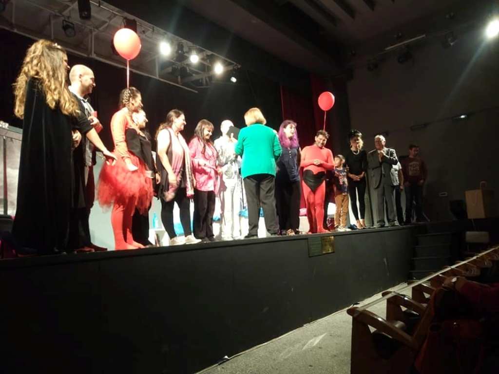 Η ώρα της υπόκλισης και του θερμού χειροκροτήματος για καθ’ όλα αξιέπαινες προσπάθειες, στο σύνολό τους κάθε άλλο παρά ερασιτεχνικές! Στην σκηνή και η Πρόεδρος της Ομοσπονδίας Ερασιτεχνικών Θιάσων Αιγαίου Μαρία Βενέτη.
