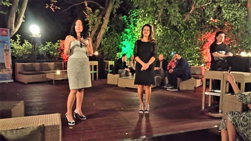 Αριστερά η Ιωάννα Παπαδοπούλου, Διευθύντρια Επικοινωνίας και Μάρκετινγκ του Δ.Α.Α. και δίπλα της η Hind El Khadiri, R.A.M. κατά την διάρκεια του χαιρετισμού τους προς τους προσκεκλημένους της εκδήλωσης στην «Αίγλη» Ζαππείου. Η Hind El Khadiri, ανακοινώνοντας την συνέχεια των δρομολογίων για την χειμερινή περίοδο, ευχήθηκε χαριτολογώντας το δρομολόγιο αυτό της R.A.M. να έχει το ίδιο success story με την υπέροχη ταινία!