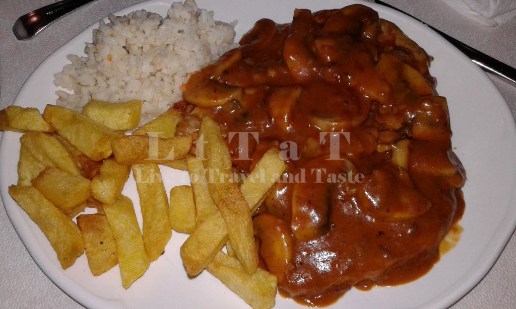 Φιλέτο χοιρινό με sauce γλυκού κρασιού και μανιτάρια.