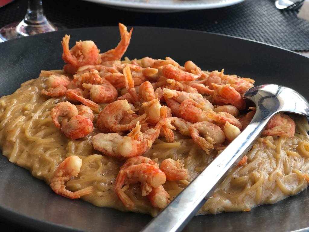 …αλλά και καρμπονάρα με γαριδάκι Σύμης.