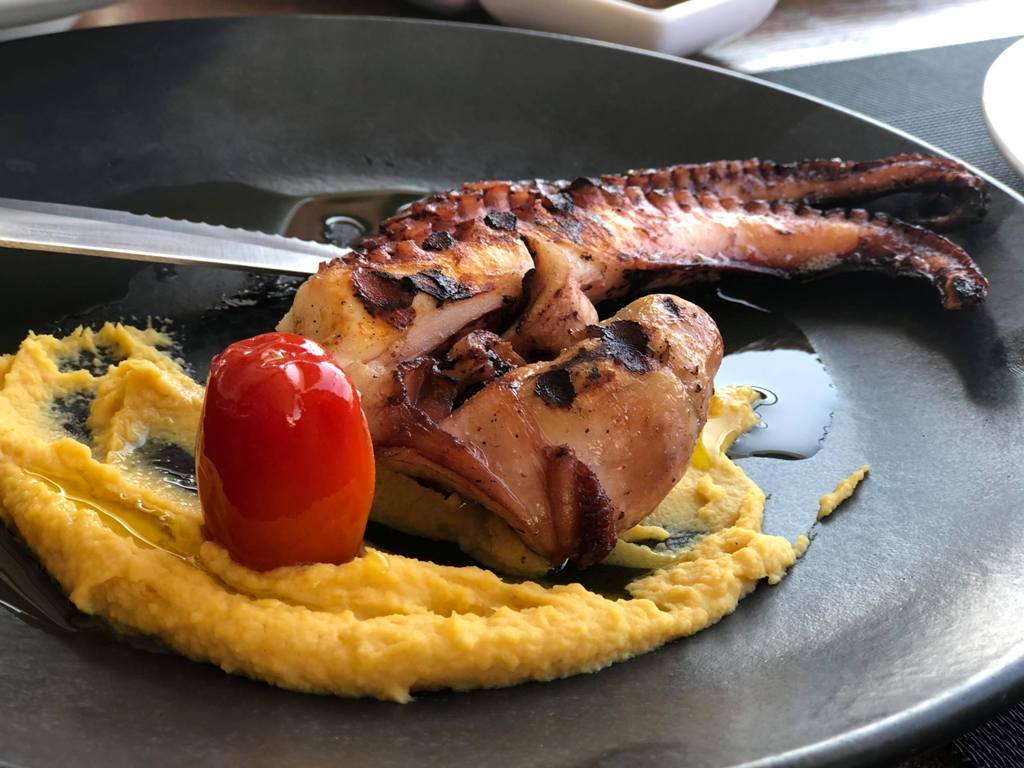 Χταπόδι ψητό στη σχάρα με φάβα Σχοινούσας.