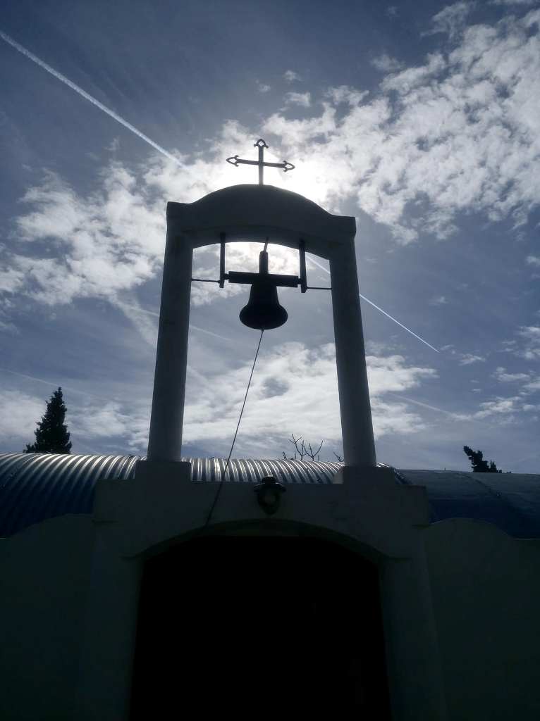Τα παιχνιδίσματα του φωτός και των νεφών με το καμπαναριό της εκκλησίας.