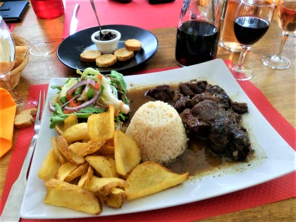 Εγώ επέλεξα μία από τις πλέον χαρακτηριστικές τοπικές παραδοσιακές συνταγές, την Gardiane (ο καβαλλάρης) de Taureau, με κρέας ντόπιου ταύρου της Camargue, το οποίο μαγειρεύεται με κόκκινο τοπικό κρασί και συνοδεύεται με ρύζι, που επίσης παράγεται σε αφθονία στην περιοχή.