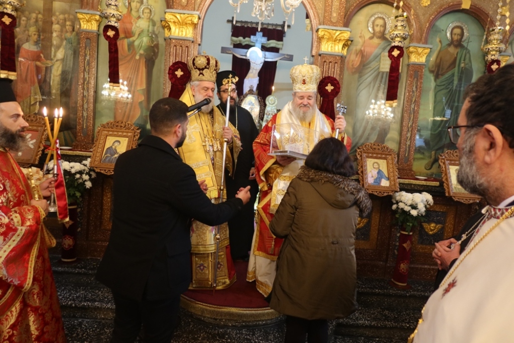 Αποτέλεσε ύψιστη τιμή για την γράφουσα το γεγονός ότι ο Σεβασμιώτατος Μητροπολίτης Σύρου-Φολεγάνδρου με κάλεσε να παραδώσω εγώ -και τον ευχαριστώ θερμά γι’ αυτό- το συναισθηματικά πολύτιμο αυτό δώρο εις χείρας του Σεβασμιωτάτου Μητροπολίτου Κυδωνίας και Αποκορώνου Δαμασκηνού, Υπερτίμου και Εξάρχου Κρητικού και Μυρτώου Πελάγους.