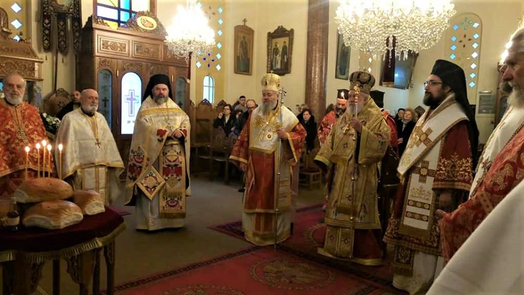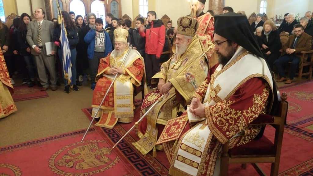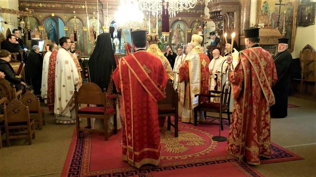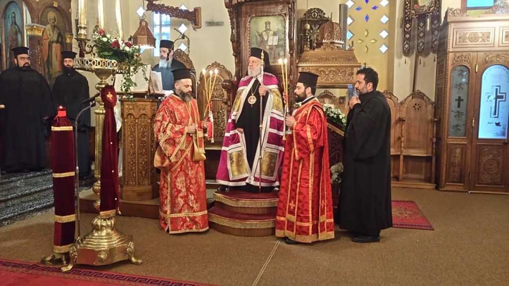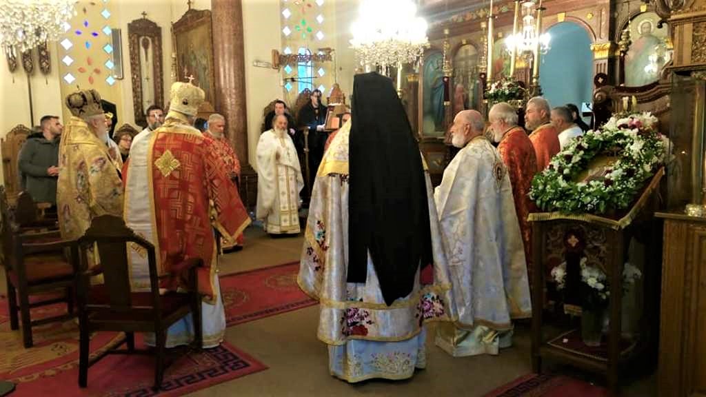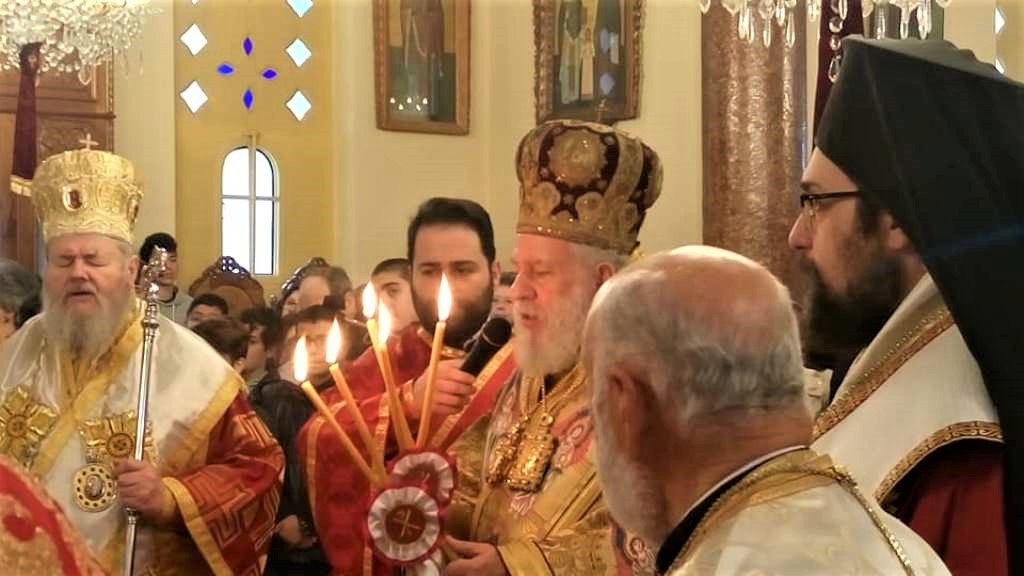 …που πήραν μέρος στην Θεία Λειτουργία. Δεξιά διακρίνεται ο Σεβασμιώτατος Μητροπολίτης Κυδωνίας και Αποκορώνου Δαμασκηνός και εκ δεξιών του ο Πανοσιολογιώτατος Αρχιμανδρίτης Διονύσιος Κατερίνας της Ιεράς Αρχιεπισκοπής Αθηνών.