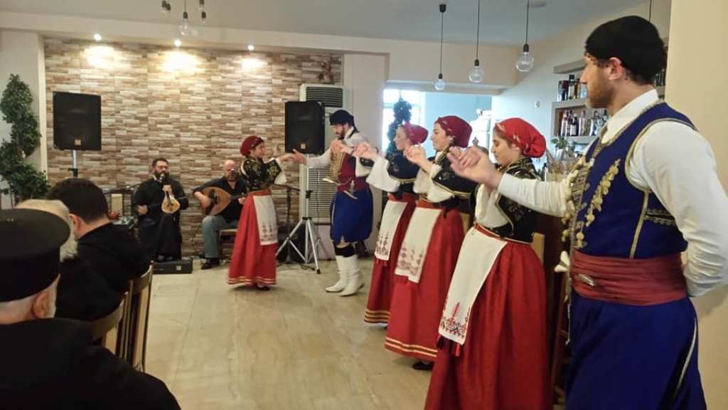 …συνοδεία μουσικής (εδώ, ο Πρωτοπρεσβύτερος Εμμανουήλ Χατζηδάκης -μπροστά- και ο Αιδεσιμώτατος π. Γεώργιος Σεργάκης, μαζί με μέλη του Παραδοσιακού Συλλόγου «Βιγλάτορες», τραγουδούν ριζίτικα και μπορείτε να παρακολουθήσετε το σχετικό video στο κανάλι μας στο YouTube)…