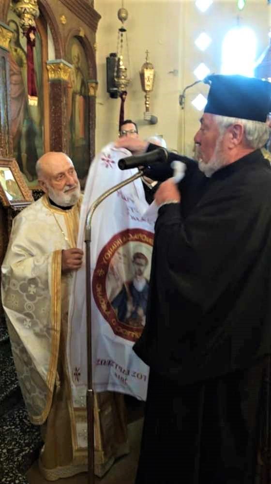 Ακολούθησε η προσφορά δώρων προς τον Πρωτοπρεσβύτερο π. Παναγιώτη Μαρινάκη (αριστερά), από τον Πρωτοπρεσβύτερο Εμμανουήλ Χατζηδάκη. Αρχικά το λάβαρο του Αγίου Γεωργίου Διβόλη και…