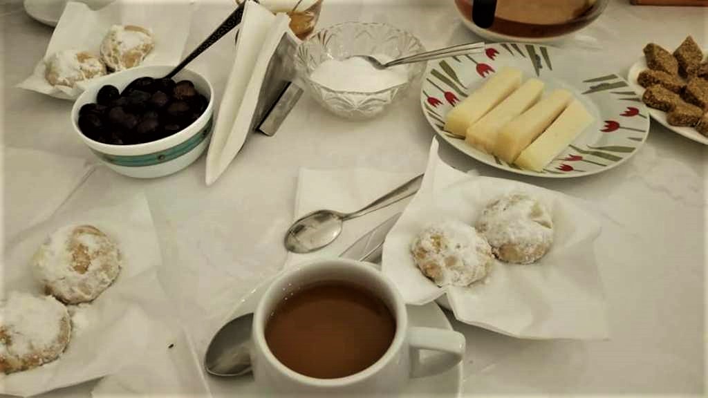 …του οποίου η «μυστική» συνταγή περιελάμβανε -όπως μας είπαν οι κυρίες της ενορίας που το ετοίμασαν- μαλοτήρα, δίκταμο, φλαμουριά, κανέλα και γαρύφαλλο. Προσθέστε και το εξαιρετικό ντόπιο μέλι και προσπαθείστε να συλλάβετε το μέγεθος της απόλαυσης, όταν μάλιστα τα συνοδευτικά του είναι γραβιέρα Κρήτης και χορτοκαλίτσουνα, κρητικά παξιμάδια, ελιές, σπιτικά κουραμπιεδάκια, αλλά και παστέλι Φολεγάνδρου, κέρασμα του Πρωτοπρεσβύτερου π. Παναγιώτη Μαρινάκη προς τον Σεβασμιώτατο Μητροπολίτη Κυδωνίας και Αποκορώνου Δαμασκηνό, ο οποίος όμως θέλησε να το μοιραστεί με όλους τους συμμετέχοντες στην απογευματινή αυτή τράπεζα.