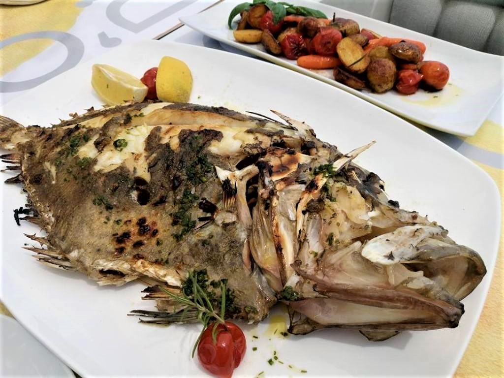 Τα ψάρια και τα θαλασσινά, που σερβίρονται εδώ, είναι πραγματικά ολόφρεσκα και πριν μαγειρευτούν επιδεικνύονται στον πελάτη προκειμένου να επιλέξει αυτό ακριβώς που του ταιριάζει, από τα διαθέσιμα της κάθε ημέρας. Εμείς επιλέξαμε το ψάρι του Αγίου Πέτρου -αυτό το ασχημούτσικο στο κέντρο της πιατέλας- με το μεγάλο σαν μάτι σημάδι του, που μπερδεύει τους εχθρούς του, αλλά και τα υποψήφια θύματά του.