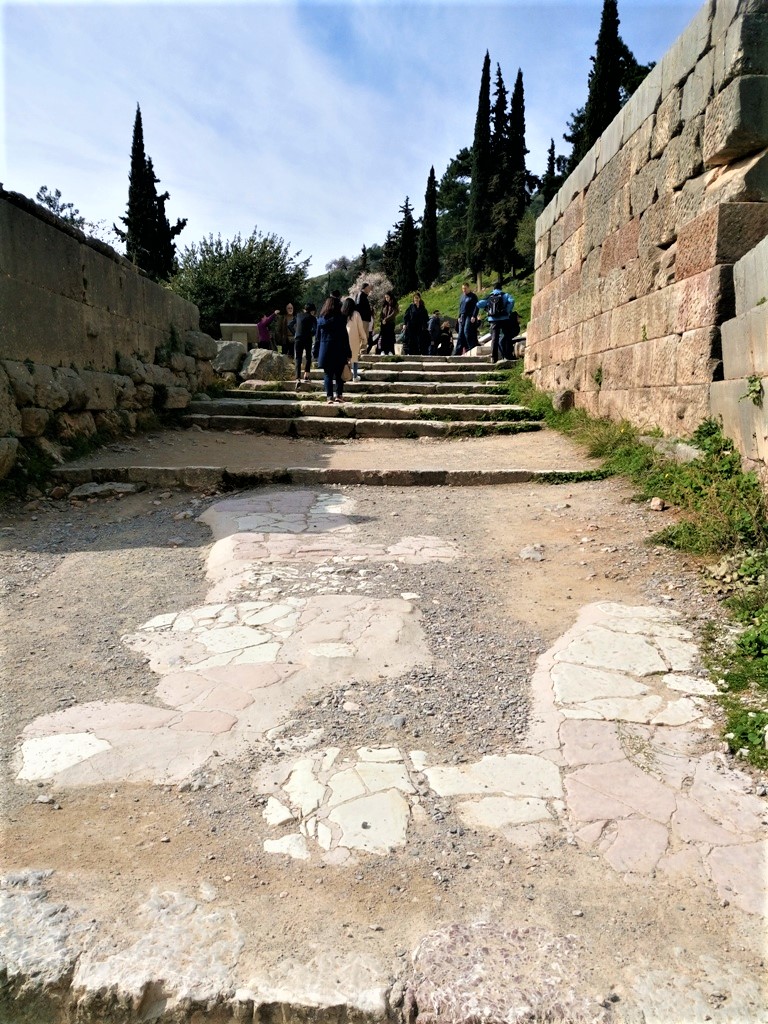 Το λιθόστρωτο μονοπάτι που συνδέει το Μουσείο με τον Αρχαιολογικό χώρο των Δελφών…