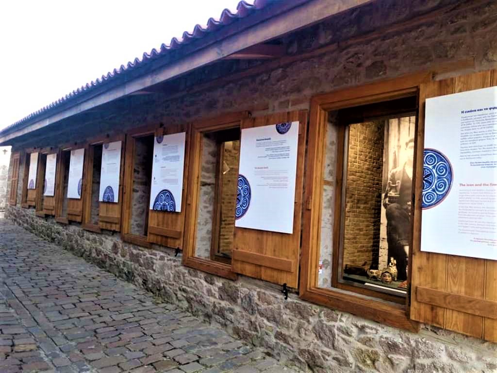Ο εκθεσιακός χώρος τοποθετείται στις μπατές του Μουσείου (μικρές αποθήκες όπου παρέμεναν οι ελιές μέχρι την άλεσή τους) προσδίδοντας αυθεντικότητα και πρωτοτυπία στην εκθεσιακή αφήγηση, διατηρώντας τη γοητεία ενός βιωμένου χώρου. Τα αντικείμενα που αξιοποιούνται ανήκουν κυρίως στα μέλη της οικογένειας Κουρτζή, καθώς και στις ιδιωτικές συλλογές των Πέτρου Βέργου, Νίκης Ελευθεριάδη, Ντίνου Κόγια και Λαογραφικού Μουσείου του Πνευματικού Κέντρου Αναγνωστήριο Αγιάσου «Η Ανάπτυξη».