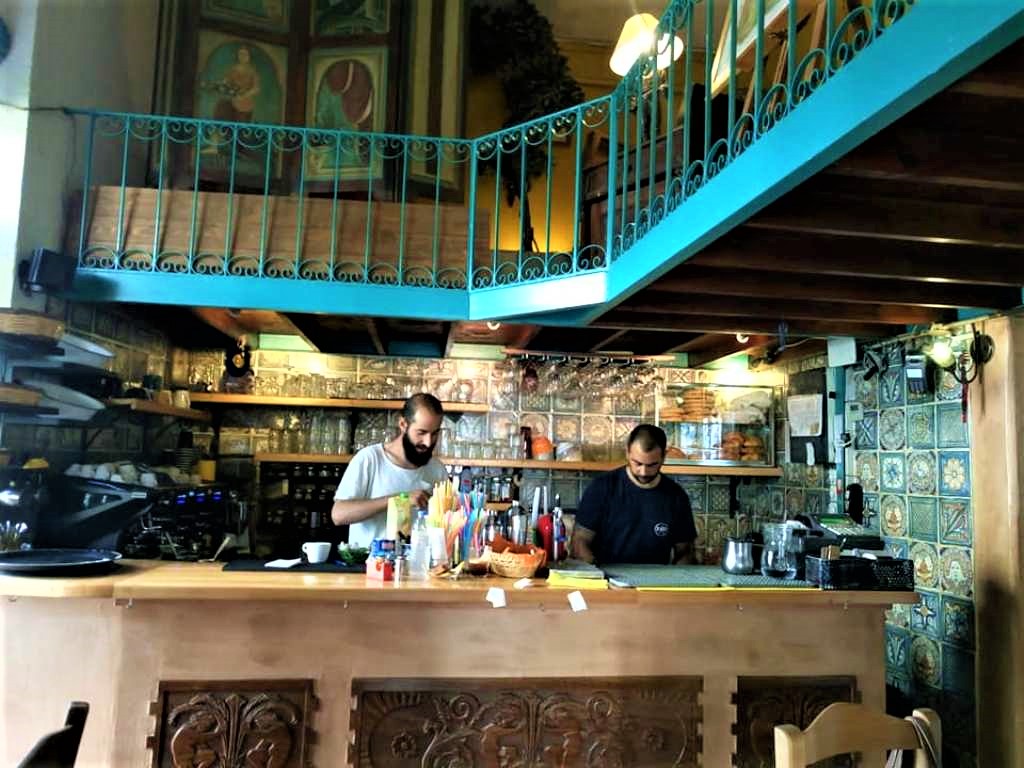 Εξωτερική άποψη του «Μουσικού Καφενείου», μια όαση δροσιάς στην περιοχή Λαδάδικα. Της Μυτιλήνης εννοείται, μην μπερδεύεστε!