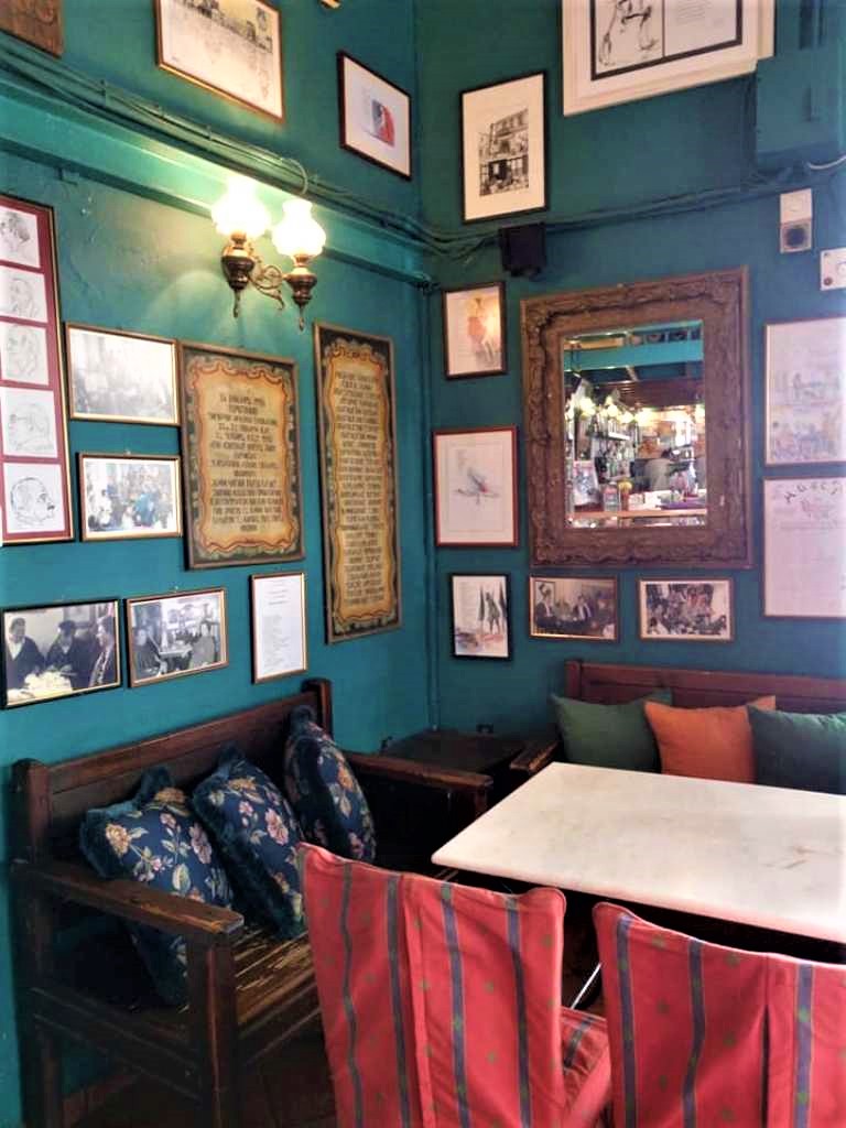 Η πρωτότυπη και εντυπωσιακή διακόσμηση φέρει την υπογραφή της Ματίνας, μητέρας του σημερινού ιδιοκτήτη του «Μουσικού Καφενείου», που έφυγε από τη ζωή το 2012.