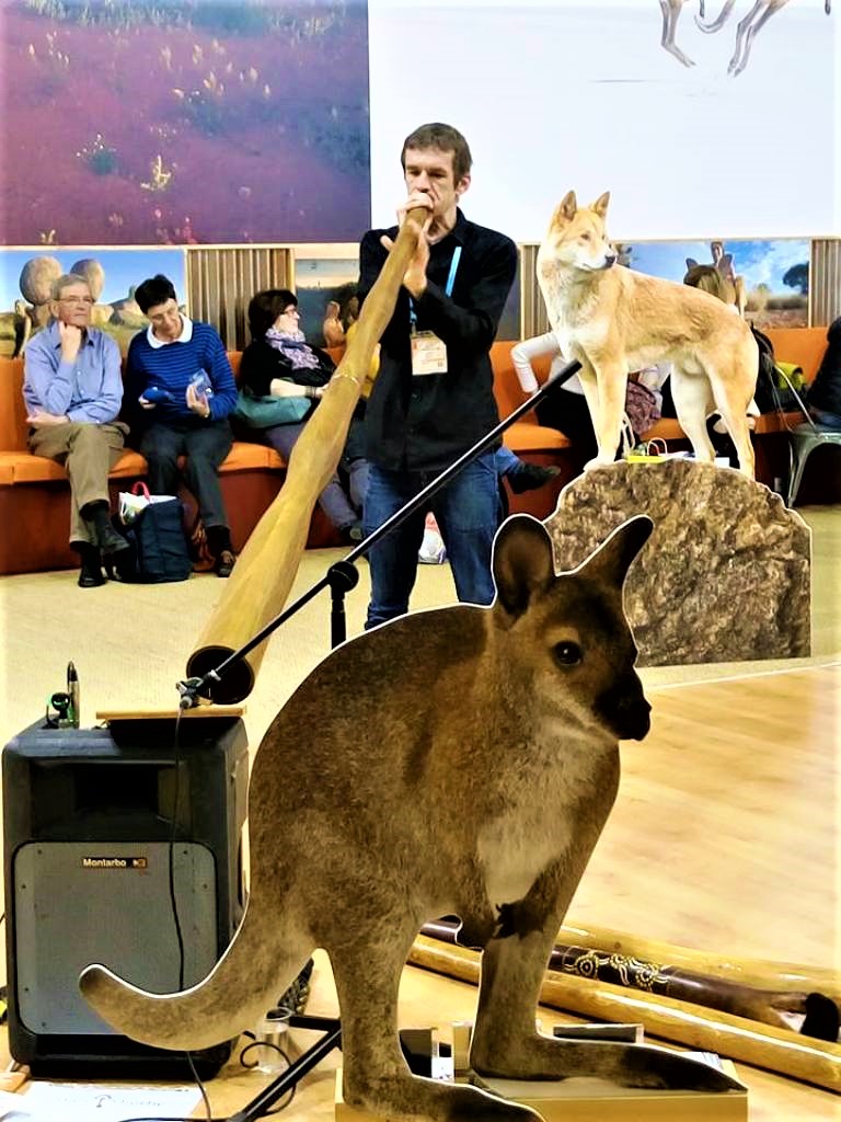 Μουσικός από την Αυστραλία παίζει το όργανο των ιθαγενών, το ντιτζεριντού, το οποίο δεν είναι παρά ένας ξύλινος σωλήνας -συνήθως ένα κούφιο κλαδί ευκαλύπτου-, που ενισχύει τους ήχους που παράγει ο μουσικός με το στόμα του, δημιουργώντας έναν παράξενο και υποβλητικό ήχο, σαν βούισμα.