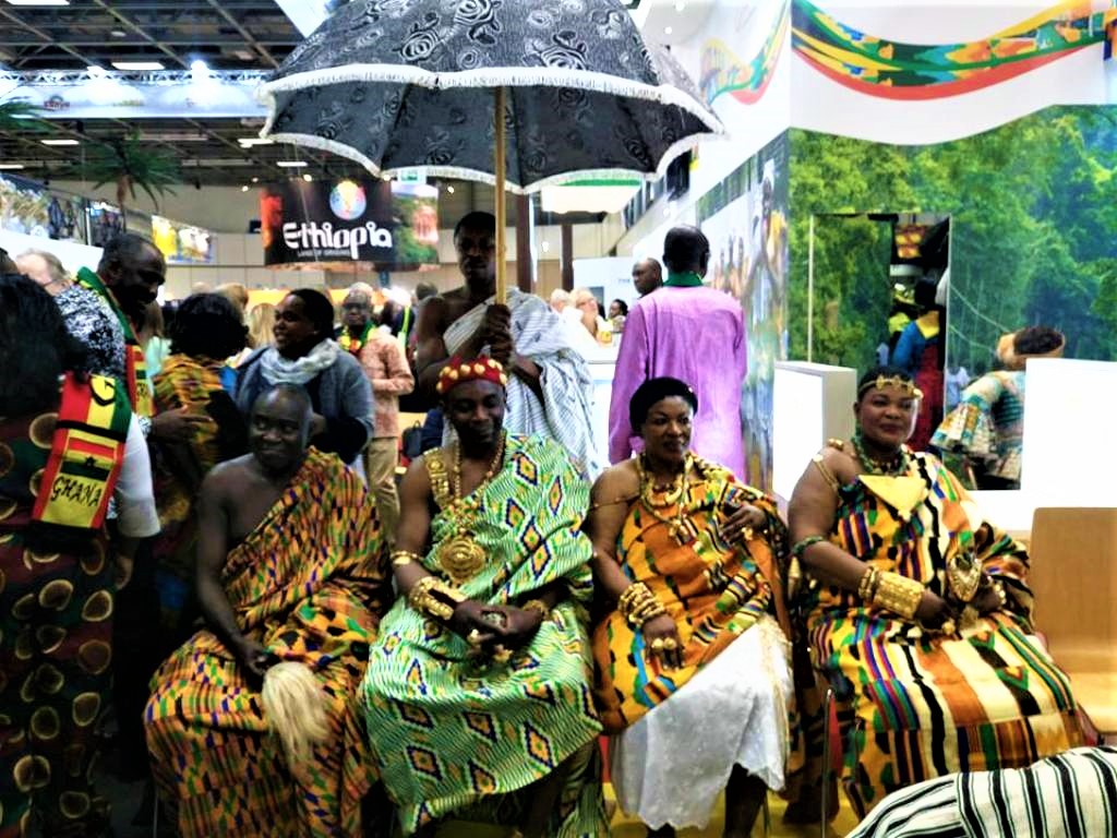 Στο περίπτερο της αφρικανικής Γκάνας οι επίσημοι εκπρόσωποι της χώρας παρακολουθούν με όλους τους τύπους την μουσικοχορευτική εκδήλωση…