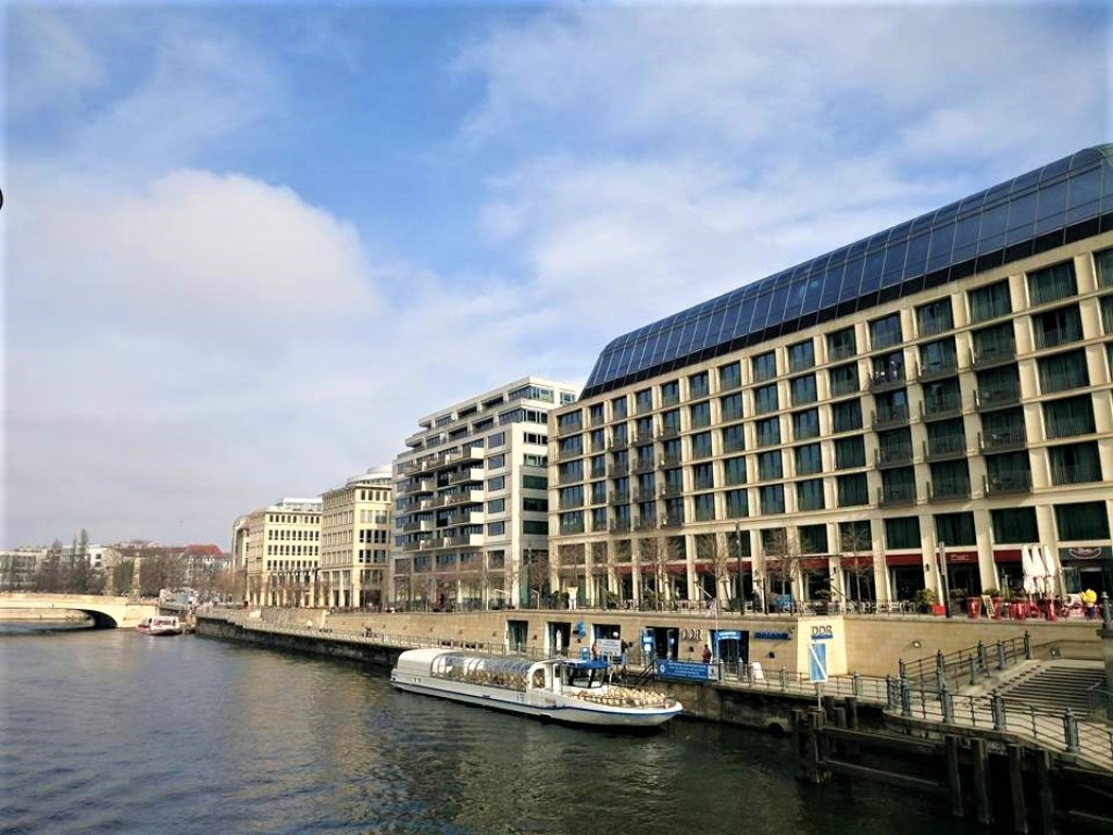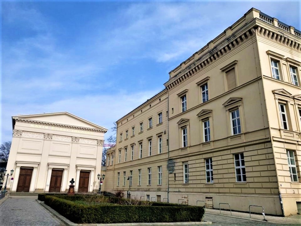 Δεξιά το θέατρο Palais am Festungsgraben, το οποίο ιδρύθηκε το 1991 και στεγάζεται σε αυτό το διατηρητέο κτήριο, πρώην παλάτι, που κατασκευάστηκε το 1753 για τον Johann Gottfried Donner, τον αρχιθαλαμηπόλο του Φρειδερίκου του Μεγάλου (Frederick the Great). Αριστερά του το θέατρο Maxim Gorki Theater.