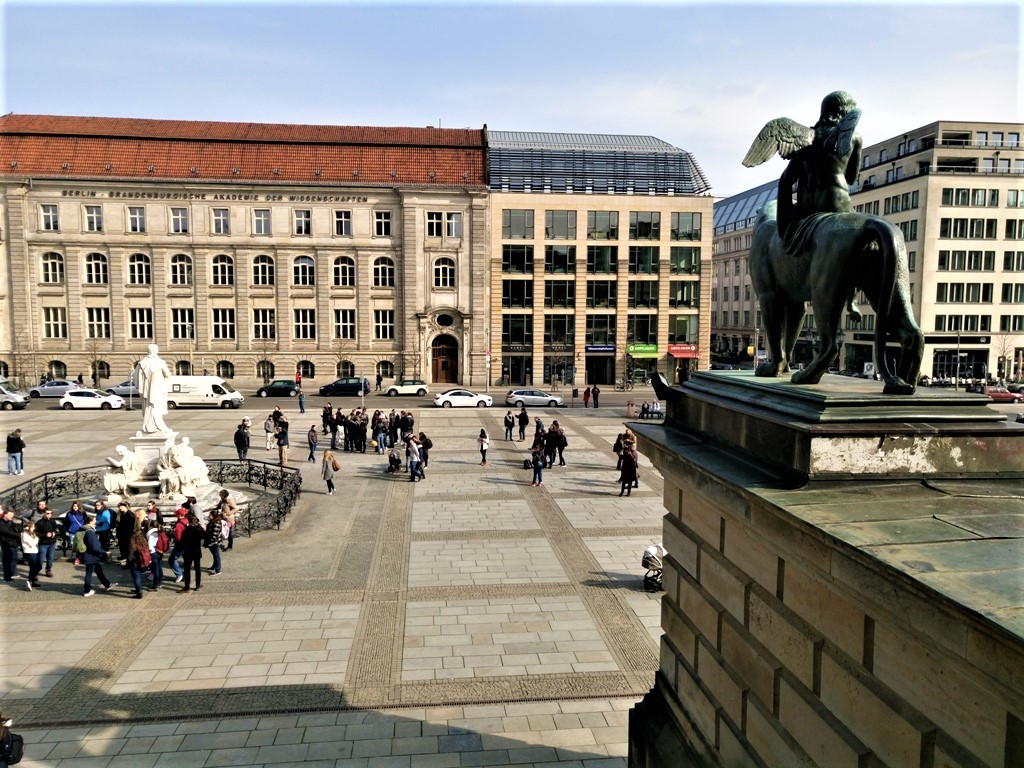 …και βρίσκεται στην πλατεία Gentarmenmarkt, όπου και η Berlin-Brandenburgische Akademie der Wissenschaften, δηλαδή η Ακαδημία Επιστημών και Ανθρωπιστικών Σπουδών Βερολίνου-Βραδεμβούργου (το κτήριο με την καραμιδένια στέγη).