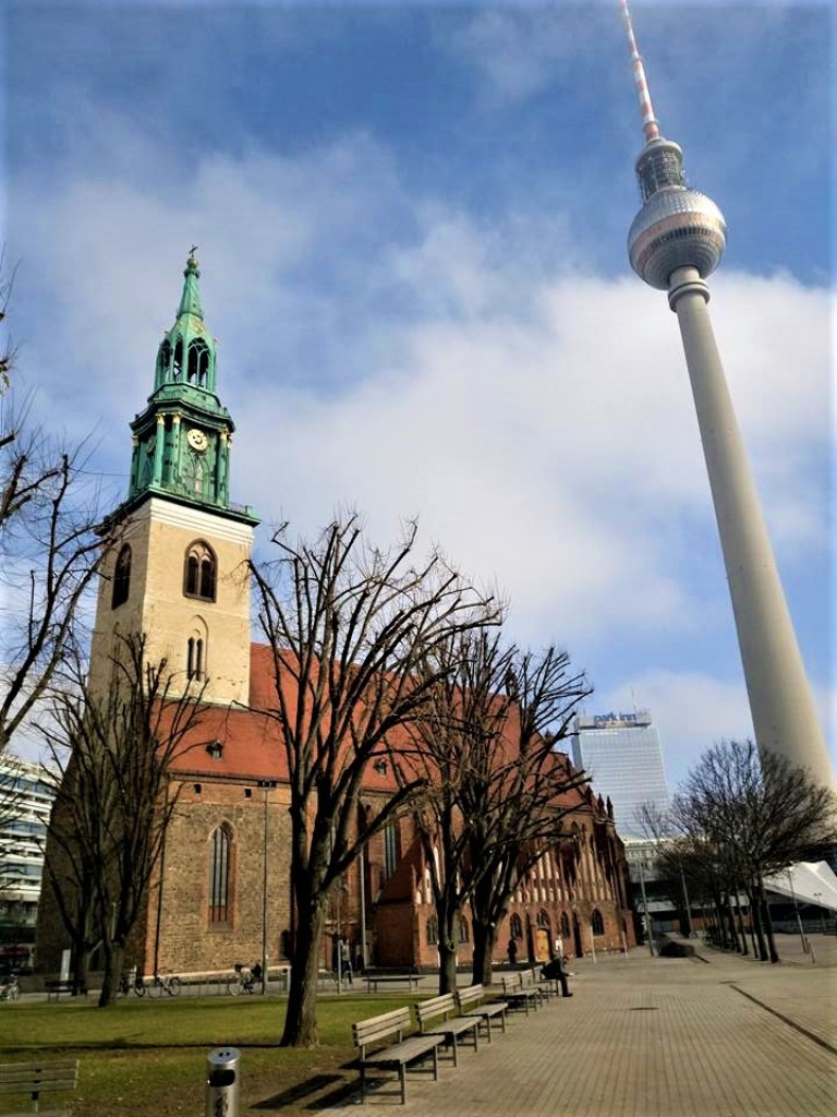 Ο τηλεοπτικός πύργος (Fernsehturm) του Βερολίνου κατασκευάστηκε μεταξύ 1965-1969 και βρίσκεται κοντά στην Alexanderplatz, εξ ου και Πύργος του Άλεξ (Alex tower). Έχει συνολικό ύψος 368μ. και τα ασανσέρ του ανεβάζουν σε 16 δευτερόλεπτα τους επισκέπτες στους περιστρεφόμενους χώρους εστίασης, που βρίσκονται σε ύψος 204 μέτρων, μέσα στη σφαίρα! Αχώριστη συντροφιά του η εκκλησία της St. Mary.