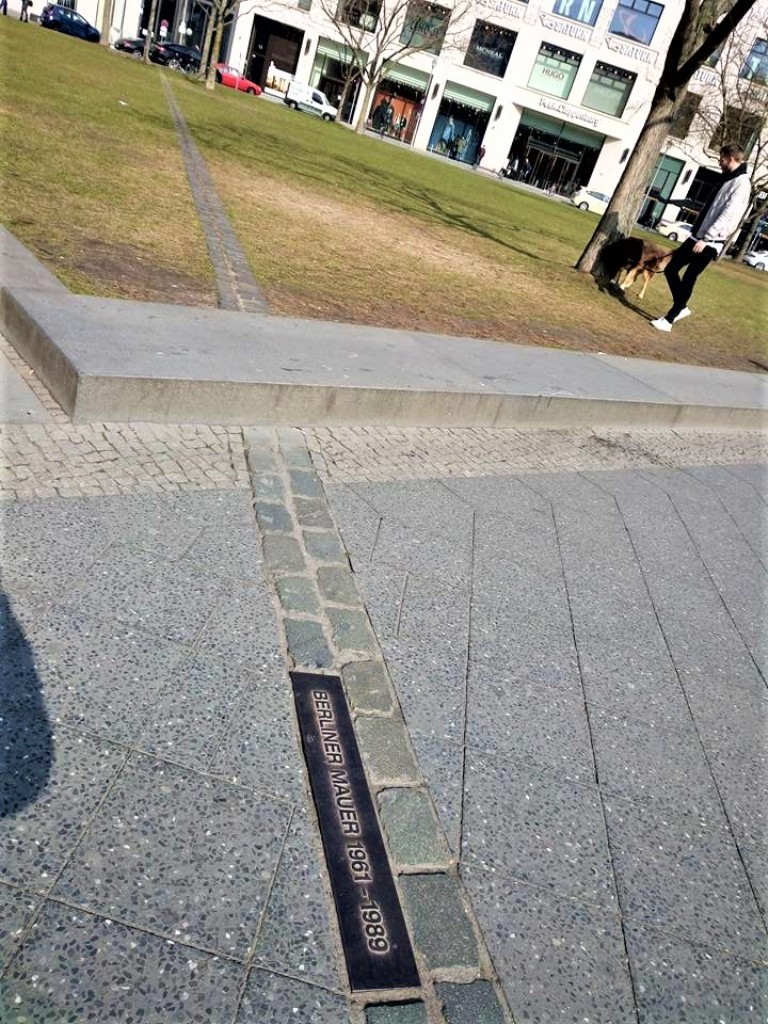 Τα ίχνη του Τείχους στους δρόμους της γερμανικής πρωτεύουσας με την πινακίδα να γράφει: Τείχος Βερολίνου 1961-1089.