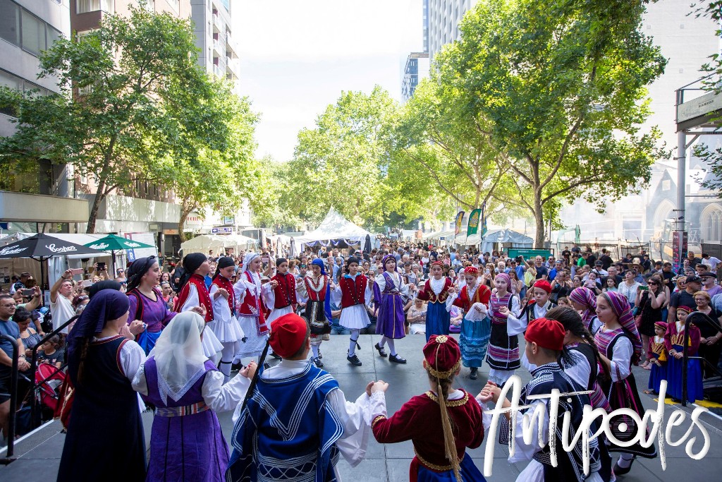 Το Φεστιβάλ «Αντίποδες» της Ελληνικής Κοινότητας Μελβούρνης -παλαιότερα γνωστό ως Lonsdale Street Greek Festival- επέστρεψε και φέτος στην ιστορική ελληνική περιοχή της οδού Lonsdale -απ’ όπου και η προαναφερθείσα ονομασία του-, για το διήμερο του Σαββάτου 29 Φεβρουαρίου και της Κυριακής 1 Μαρτίου. Η μεγαλύτερη ελληνική πολιτιστική γιορτή της Μελβούρνης διοργανώθηκε φέτος όχι μόνο υπό νέο όνομα, αλλά και με νέα εμφάνιση και πολλές νέες προσφορές και εστέφθη, όπως ήταν αναμενόμενο, με απόλυτη επιτυχία. Με περισσότερα από 90 περίπτερα, τρεις μεγάλες εξέδρες με δωρεάν ψυχαγωγία, εκατοντάδες καλλιτέχνες και δραστηριότητες για παιδιά, καθώς και πολλά bar και μια σειρά από εκλεπτυσμένες ελληνικές γαστρονομικές απολαύσεις, ήταν πραγματικά η ιδανική επιλογή για την ψυχαγωγία ολόκληρης της οικογένειας!