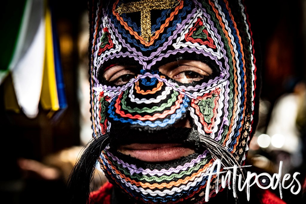 …ή οι μεταμφιεσμένοι του Σοχού, τα «Καρναβάλια», με τις πολύχρωμες προσωπίδες -με βάση μαύρο μάλλινο ύφασμα-, οι οποίες καλύπτουν ολόκληρο το κεφάλι, αφήνοντας μία σχισμή στα μάτια και μία στο στόμα…